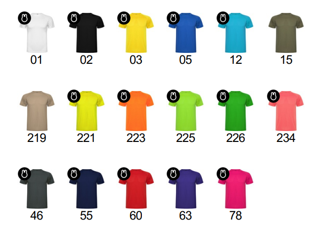 | Color | Amarillo, Amarillo Fluor, Arena Oscuro, Blanco, Coral Fluor, Lima, Marino, Morado, Naranja Fluor, Negro, Plomo Oscuro, Rojo, Roseton, Royal, Turquesa, Verde Helecho, Verde Militar |